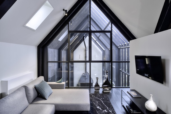 Voor ons is de Paljas Loft gereserveerd. Gelegen in het historische gedeelte van het pand, combineert deze kamer het rauwe karakter van het oude gebouw met modern, stijlvol design. Bij binnenkomst valt direct de indrukwekkende ruimte met het hoge plafond op. De warme, authentieke sfeer contrasteert met de strakke, eigentijdse inrichting. De loft is ruim opgezet, met een open indeling die veel licht binnenlaat dankzij grote industriële ramen. De leefruimte is smaakvol ingericht met designmeubels. Comfortabele banken en stoelen nodigen uit tot ontspannen, terwijl diverse kunstwerken en sub-tiele designelementen de ruimte een extra dimensie geven.