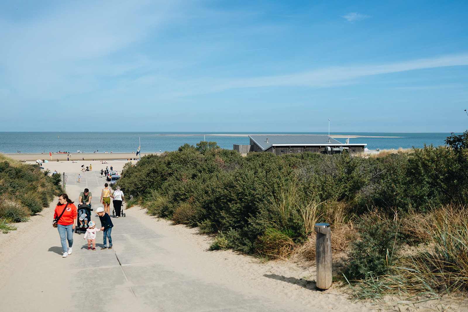 De Zeeuwse Stromen is gelegen op 300 meter van het Noordzeestrand. Vanaf de duinovergang ziet u rechts het bijbehorende strandpaviljoen.
